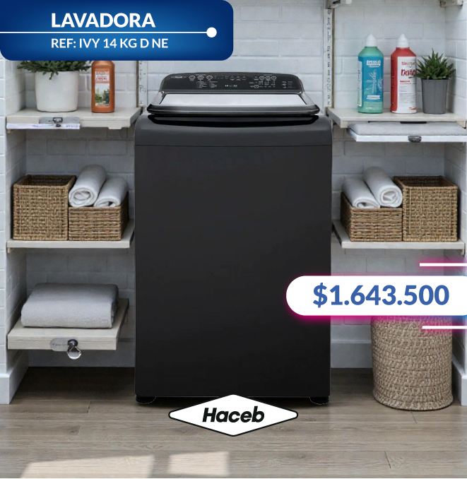HACEBLavadora HACEB IVY Digital 14 Kilos Carga Superior Negra
