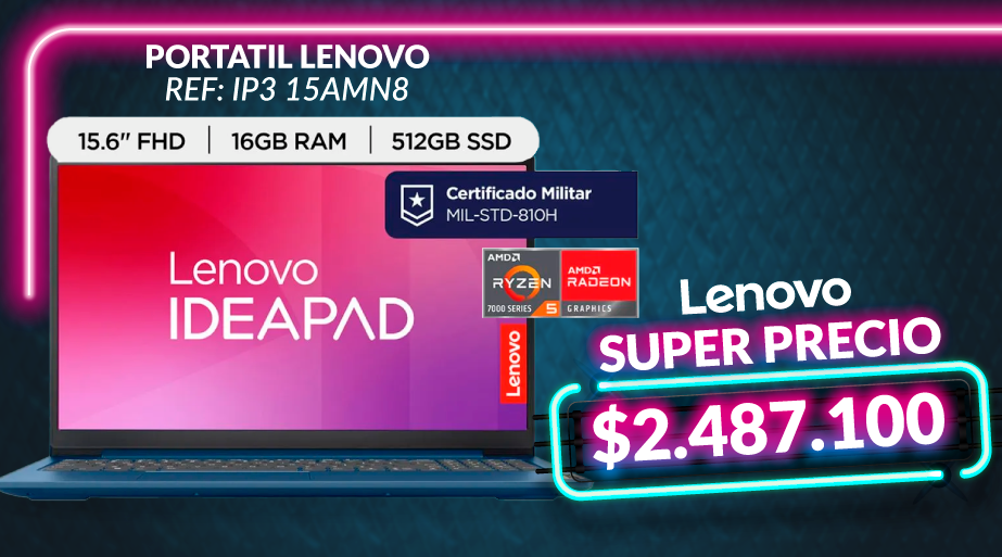 LENOVOPortátil LENOVO 15 ABR8 Ryzen 7 16GB RAM 512GB Azul