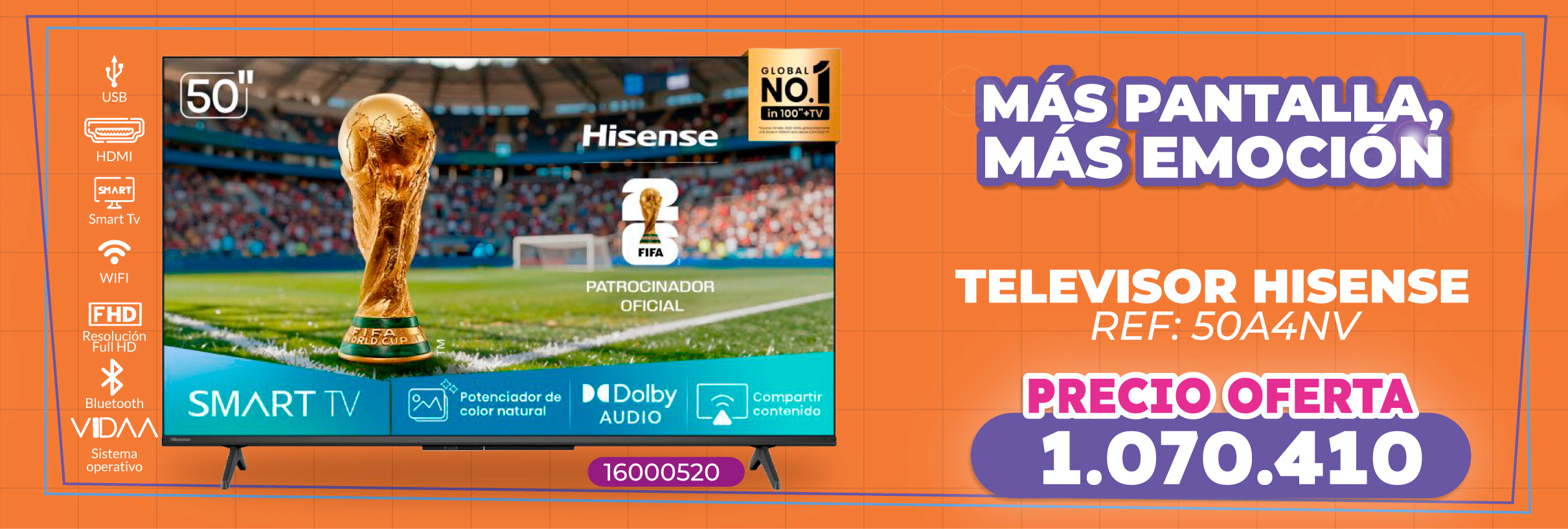 HISENSETelevisor HISENSE 70" 70A6NV VIDAA Smart Tv