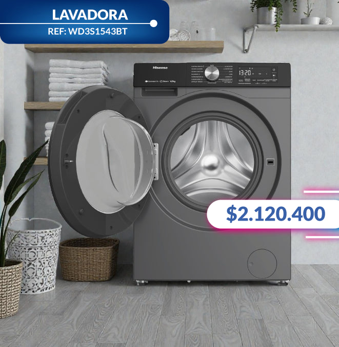 HISENSELavadora Secadora HISENSE WD3S1543BT 15 Kilos Carga Frontal Gris
