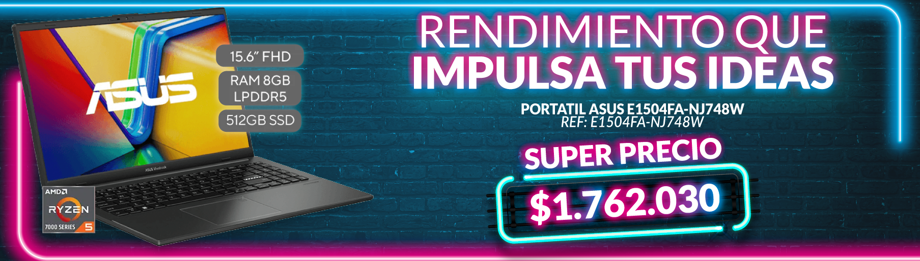 ASUSPortátil ASUS E1504FA-NJ748W RYZ5 512GB 8GB