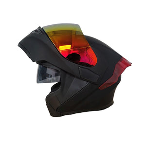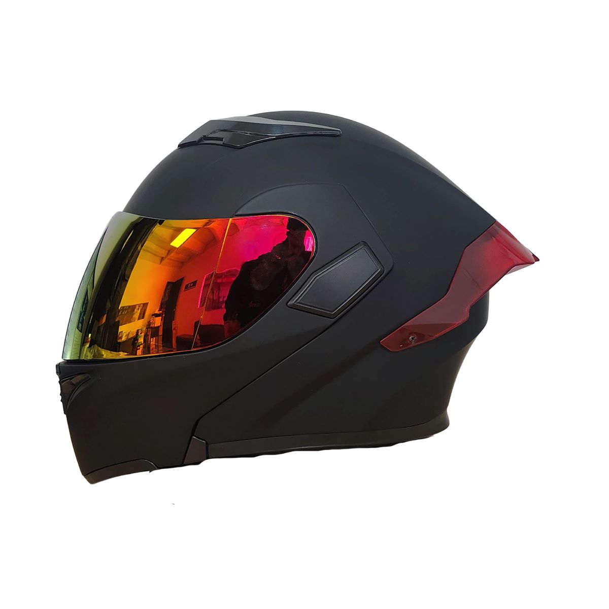 El XR-920 de Xecuro es un casco abatible diseñado para motociclistas que buscan una combinación de seguridad certificada, confort superior y estilo moderno. Este modelo destaca por su estética agresiva y elegante, con un acabado negro mate complementado por detalles en rojo translúcido, incluyendo un visor principal en tono rojo, que le da un toque distintivo y deportivo.