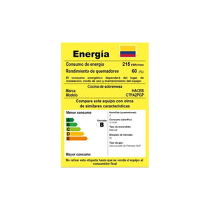 Este modelo de Cocineta HACEB ARANDANO Gas Propano 2 PUESTOS. Está ajustado para ser instalado entre 2 y 2700 metros sobre el nivel del mar, y no debe instalarse en baños ni dormitorios