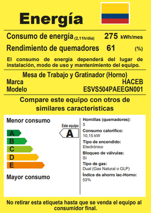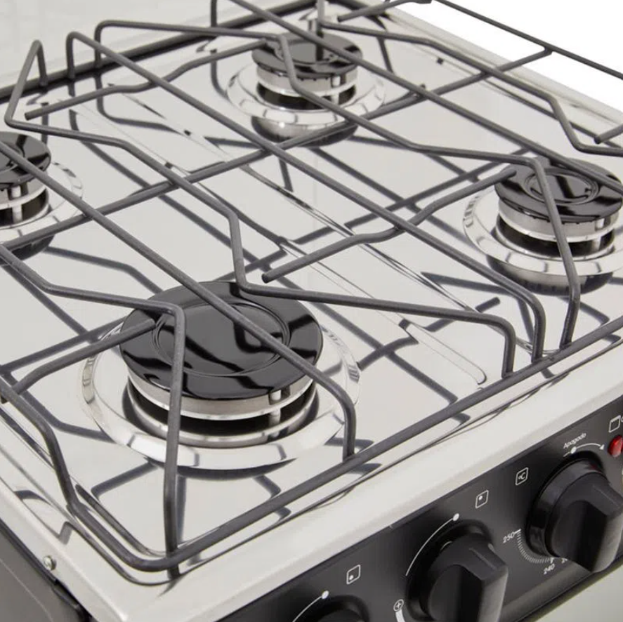 La estufa más vendida de HACEB ofrece un contraste único de colores y acabados. Con 50 cm de ancho, cuenta con fogones de diferentes tamaños y una parrilla continua antideslizante que proporciona versatilidad en tus recetas. Prepara las comidas más deliciosas y crujientes usando el gratinador eléctrico. Lo más importante, cocina con tranquilidad, ya que el producto evita fugas de gas y sobrecalentamiento.