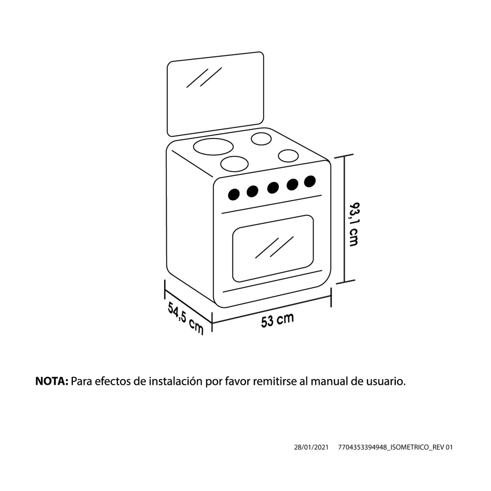 Dimensiones: 53 x 93.1 x 54.5 Cm (Ancho x Alto x Fondo)