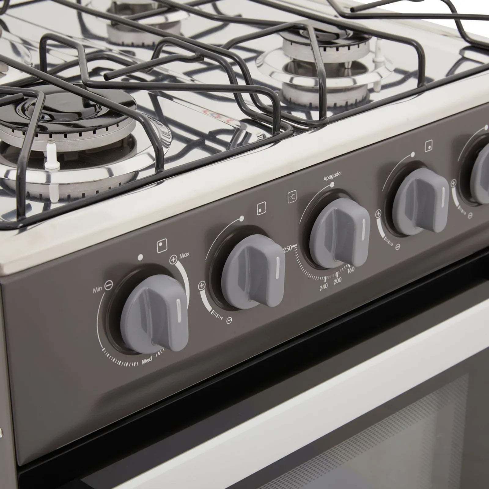 Con 4 puestos de cocción (3 a gas y 1 eléctrico), esta estufa permite una cocción versátil adaptada a diferentes necesidades. Su diseño tipo gabinete torre no solo optimiza el espacio en tu cocina, sino que también incluye compartimientos para almacenamiento, lo que la convierte en una solución práctica y organizada.
