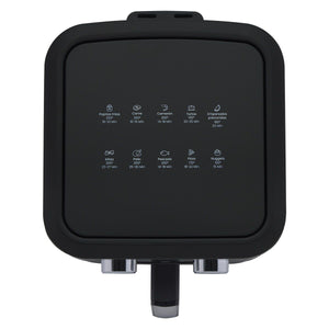 Su diseño moderno en color negro con acabados en acero inoxidable se adapta a cualquier estilo de cocina, aportando elegancia y funcionalidad. Cuenta con control manual de temperatura de hasta 200°C, temporizador de hasta 60 minutos, indicador LED y alerta sonora, brindándote precisión y comodidad en cada preparación.