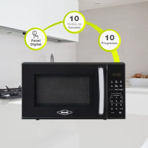 Cuenta con 10 programas predeterminados en el panel digital, para que solo con un toque prepares multiples recetas cada día (Papas, palomitas, pizza, carnes, comidas congeladas) o programes la función ideal (Bebidas, descongelar por peso y por tiempo).