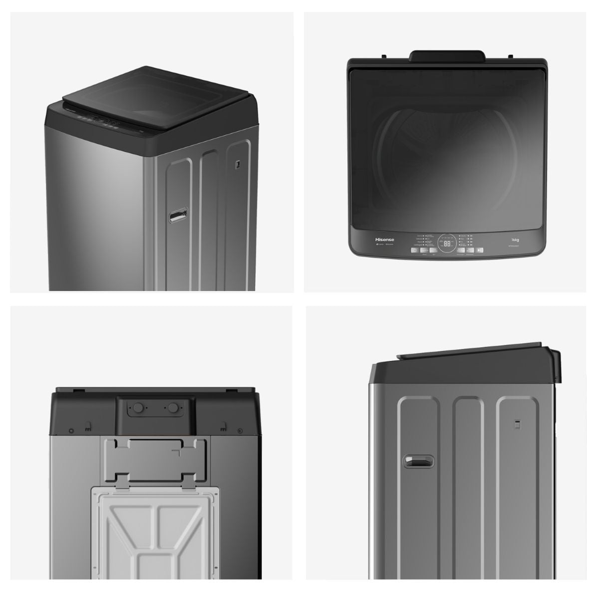 La lavadora Hisense WT5K1623DT de 16 kg está diseñada para ofrecer una experiencia de lavado superior, combinando tecnología avanzada con un diseño moderno y funcional. Su estilo elegante en gris titanio y tapa de vidrio templado sin marco aportan un toque sofisticado al hogar, mientras que su estructura robusta garantiza durabilidad y estabilidad durante el uso.