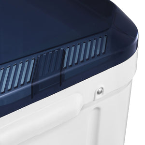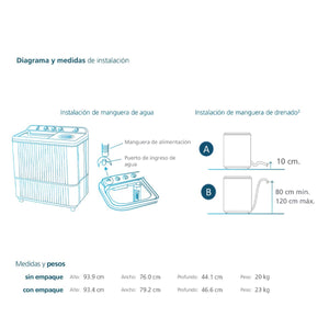 Lavadora de doble tina con capacidad de 11 kg, ideal para el lavado diario. Cuenta con propela 360° para un lavado profundo, recubrimiento antibacterial Safe & Clean que elimina hasta el 99.99% de bacterias, Magic Filter para atrapar pelusas, y Air Vent que evita el moho. Su diseño práctico incluye tapa desmontable, control manual con 3 perillas, y drenaje por gravedad (sin bomba de desagüe).