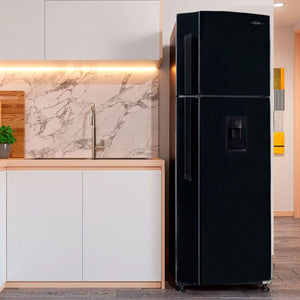 Nevera HACEB negra de 311 litros brutos, diseñada para alargar la vida de tus alimentos gracias a su sistema de conservación Himalaya, compuesto por: frío sectorizado y estable en cada zona, corrientes de frío óptimas, separador de frutas y verduras, y compartimiento extra-frío. Tendrás gran visibilidad y menos sombras gracias a su iluminación tipo LED de gran alcance. Ordenar será un placer con su amplio espacio interior y distribución modular. Además, podrás disfrutar tus bebidas frías por más tiempo gracias a su novedoso fabricador de hielo que te entrega hielos grandes y fáciles de sacar.