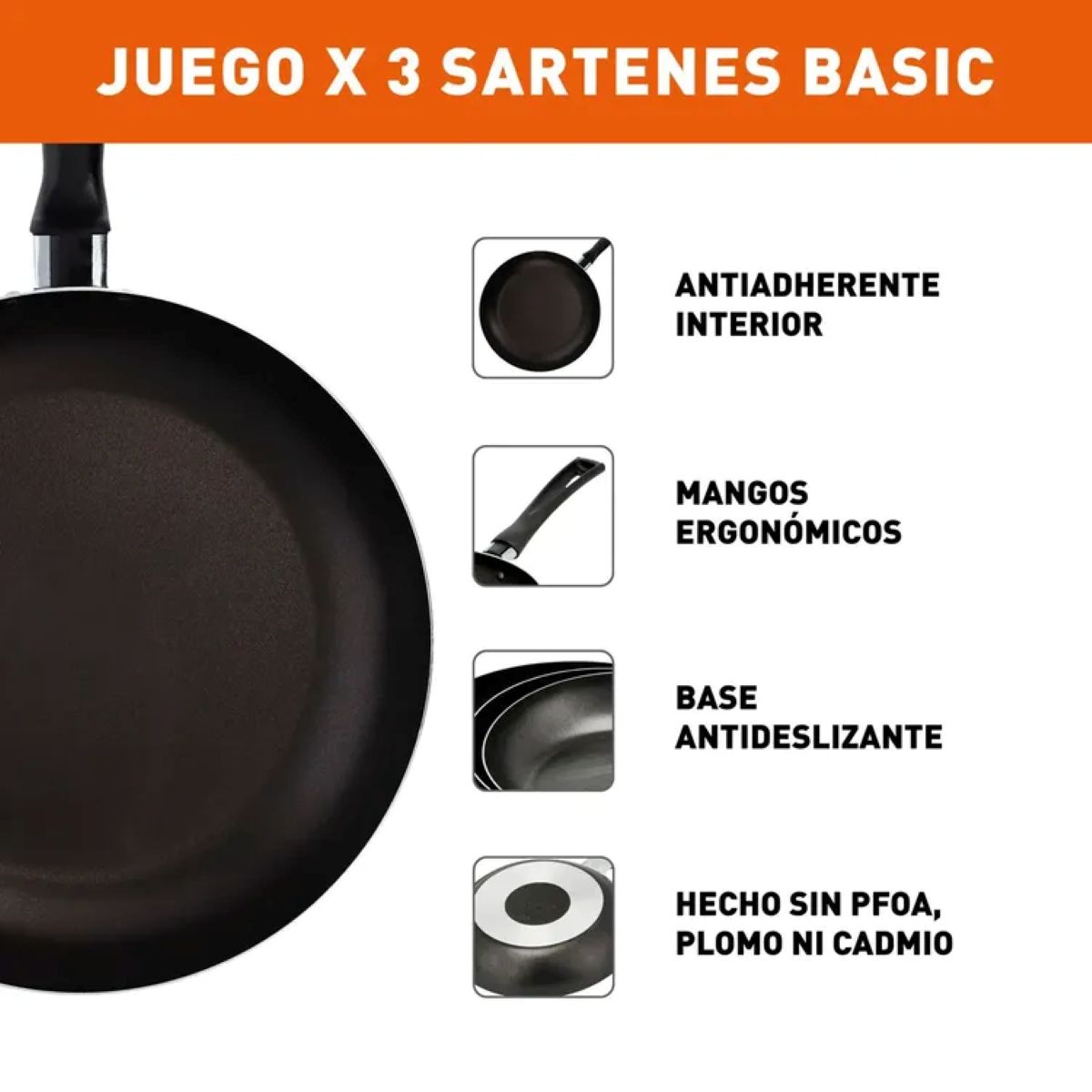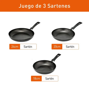 1 Sartén de 18 Sartén de 20 cm 1 Sartén de 24 cm