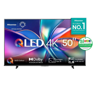 Televisor HISENSE 50" 50Q6QV UHD 4K QLED combina innovación, diseño moderno y tecnología avanzada para ofrecer una experiencia visual única. Con su pantalla QLED de 50 pulgadas y resolución UHD 4K Este Smart TV HISENSE integra el sistema operativo VIDAA U9, que permite acceder fácilmente a tus aplicaciones favoritas como Netflix, YouTube y Prime Video. Con Dolby Vision IQ, HDR10+ Adaptive y modo cineasta, garantizando una calidad de imagen superior en películas, series y videojuegos. Su diseño elegante y delgado se adapta a cualquier espacio del hogar con 3 puertos HDMI, 2 puertos USB, Wi-Fi, Bluetooth y Ethernet, ofrece múltiples opciones de conectividad para consolas, dispositivos externos y sonido envolvente.