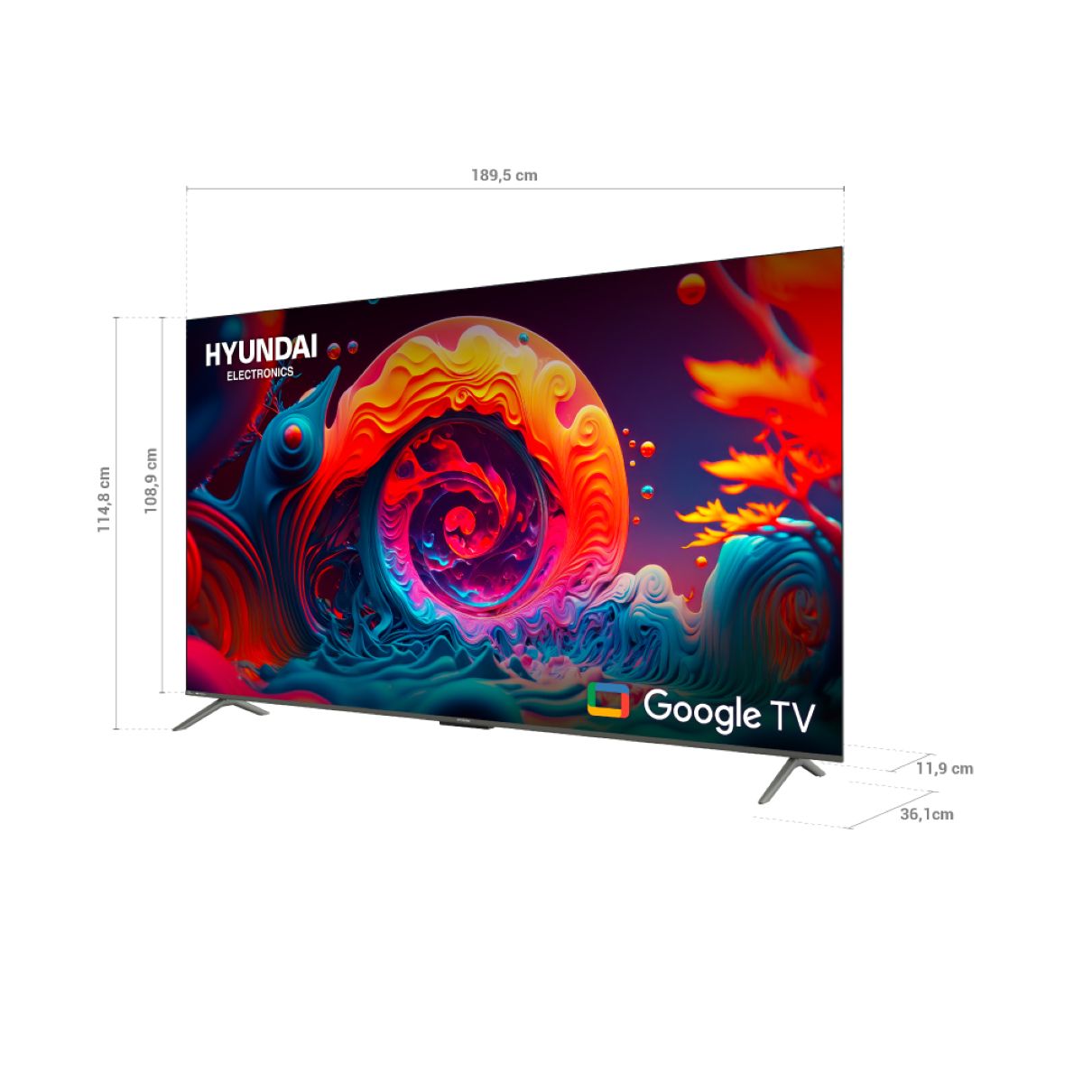 Televisor HYUNDAI 85" HYLED8503QG QLED Smart UHD 4K Disfruta de una experiencia visual sin límites con el Televisor Hyundai 85 pulgadas QLED Smart, diseñado para transformar tu sala en un verdadero cine en casa. Su pantalla gigante UHD 4K ofrece imágenes nítidas, colores vibrantes y un contraste superior gracias a la tecnología QLED, que garantiza una calidad de imagen excepcional en cada escena. Con su sistema Smart TV, accede fácilmente a tus aplicaciones favoritas como Netflix, YouTube y Disney, navegando con rapidez y comodidad. El diseño elegante y moderno del Hyundai se adapta a cualquier espacio, convirtiéndose en el centro de entretenimiento ideal para tu hogar.