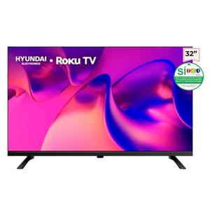 Televisor LED Hyundai de 32 pulgadas con resolución HD y sistema Roku integrado. Ofrece acceso a miles de apps, control desde el celular, sonido Dolby Audio y conectividad Wi-Fi.