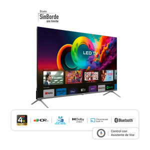 Incorpora Google TV para acceso fluido a apps como Netflix y YouTube, y permite control por voz con Google Assistant. Su procesador Quad-Core A55 optimiza imagen y sonido en tiempo real, mientras que Dolby Atmos brinda audio envolvente y tridimensional.