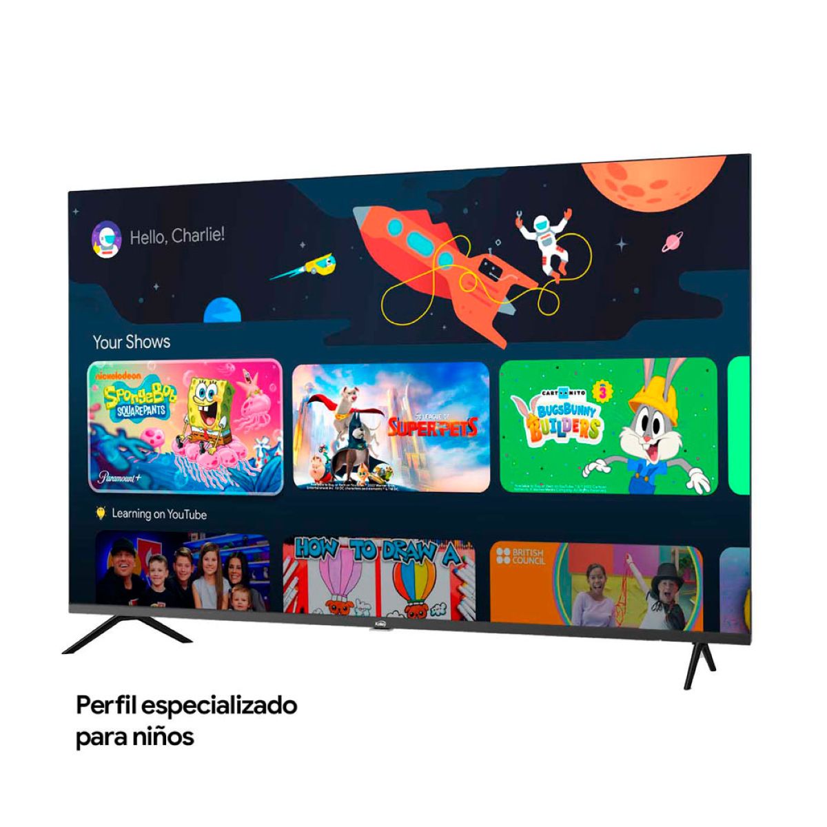Televisor KALLEY 58" 4K UHD QLED Smart TV Google es la elección perfecta para quienes buscan calidad de imagen, conectividad avanzada y diseño moderno. Con su pantalla QLED de 58 pulgadas, disfrutarás de colores más vivos, negros profundos y una experiencia visual envolvente en resolución 4K Ultra HD. Este Smart TV con sistema Google TV te permite acceder fácilmente a tus aplicaciones favoritas como YouTube, Netflix, Disney+ y Prime Video, además de contar con Asistente de Google integrado para controlar tu televisor con comandos de voz. Su diseño elegante y delgado se adapta a cualquier espacio del hogar, mientras que la tecnología HDR