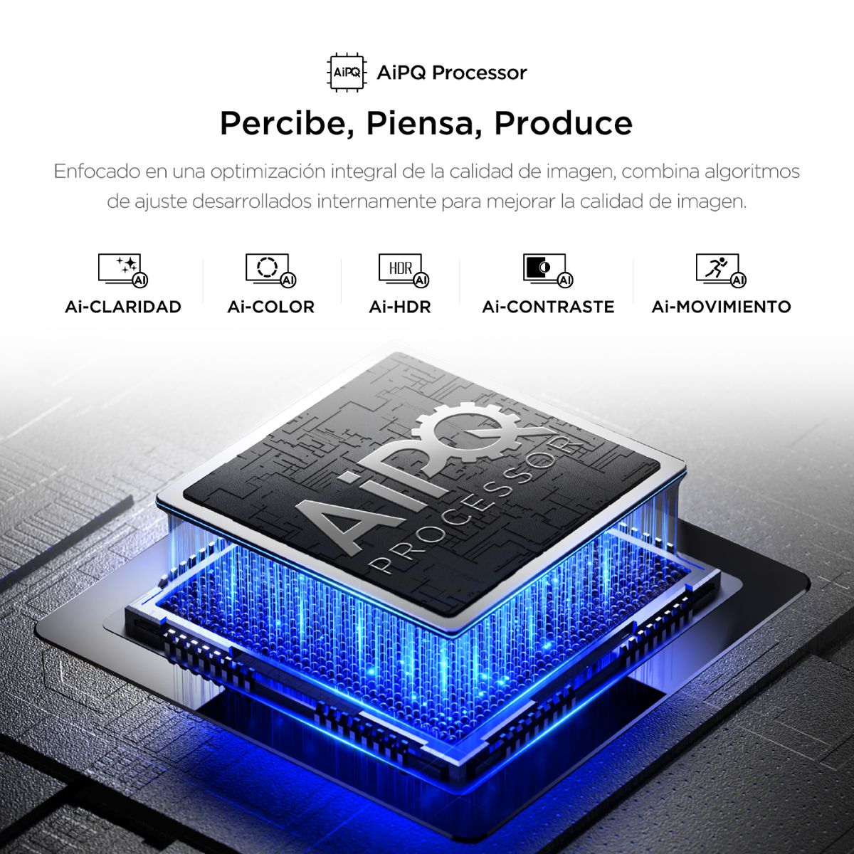 El procesador AiPQ Engine trabaja en tiempo real para optimizar la calidad de imagen, ajustando parámetros como color, nitidez y movimiento. Además, la tecnología MEMC garantiza escenas más fluidas, reduciendo el desenfoque y el parpadeo en movimientos rápidos, ideal para deportes, películas de acción y videojuegos.