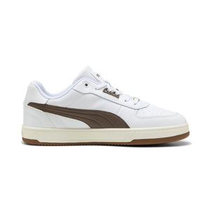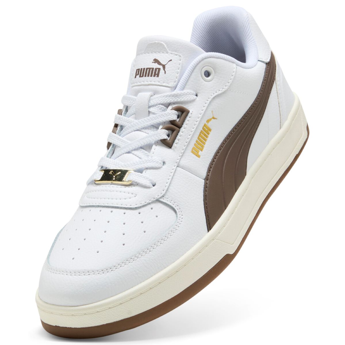 Tenis PUMA Caven 2.0 Lux para hombre en color blanco, diseño retro inspirado en el baloncesto de los 80. Elaborados en cuero y material sintético, con plantilla SoftFoam para máxima comodidad. Ideales para uso urbano y casual.