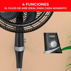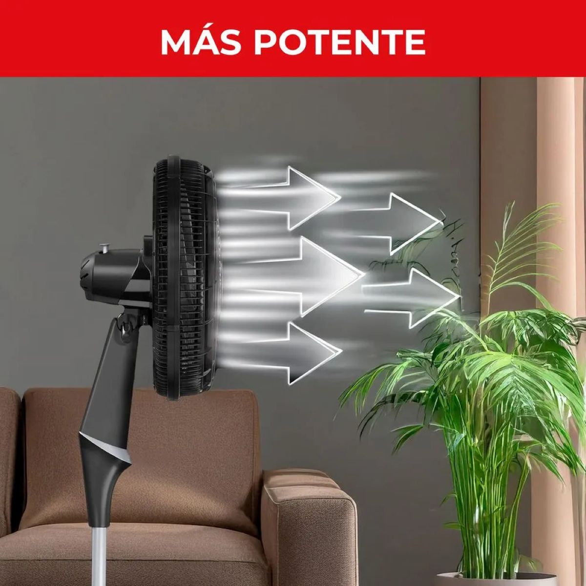 Ventilador de pedestal o pared con 5 velocidades, tecnología Ultra Silenciosa y PowerZone para máxima frescura. Cuenta con 6 aspas aerodinámicas, oscilación horizontal de 90°, motor PowerTech Resist de alta durabilidad y diseño liviano en plástico.