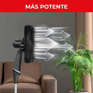 Cuenta con 5 velocidades, incluyendo una opción Ultra Silenciosa, ideal para ambientes donde se requiere tranquilidad, como dormitorios u oficinas. Su diseño incorpora 6 aspas aerodinámicas que optimizan el flujo de aire, ofreciendo una ventilación potente y uniforme.