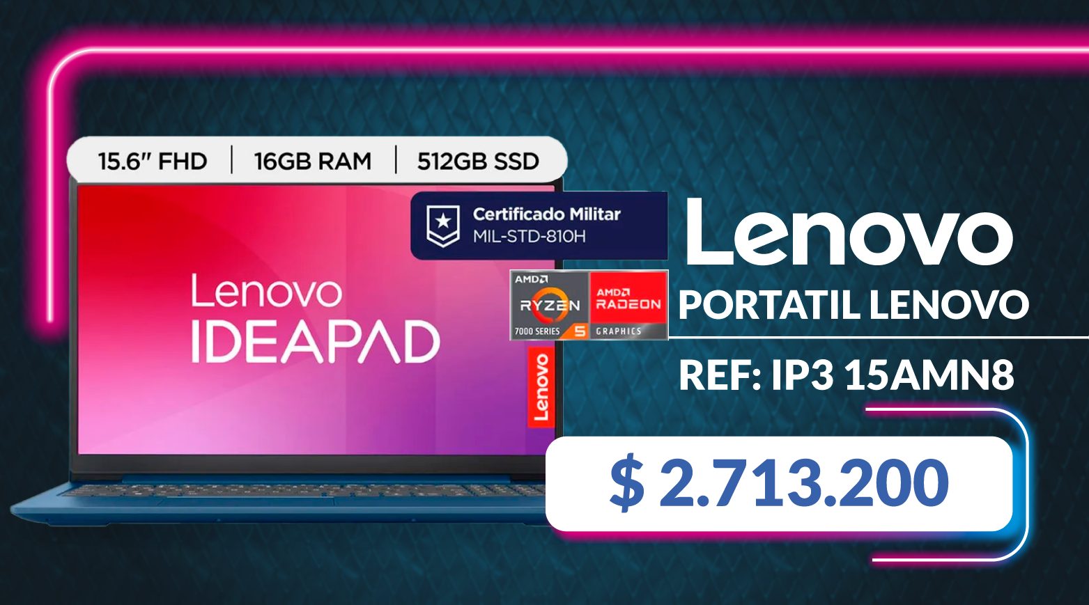 LENOVOPortátil LENOVO 15 ABR8 Ryzen 7 16GB RAM 512GB Azul
